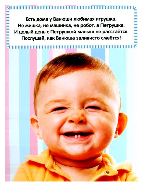 Смейтесь вместе с нами! Нажав на кнопку, вы услышите задорный детский смех! Эти хохотунчики поднимут настроение вам и вашему малышу.