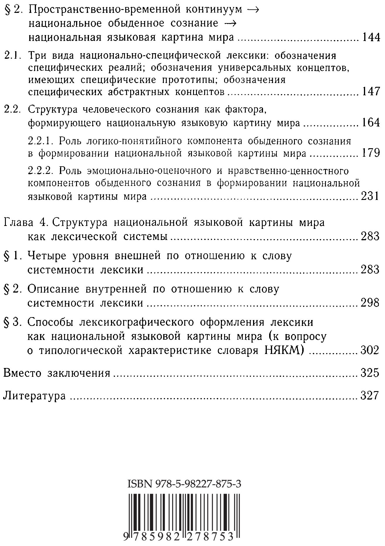 В учебном пособии предпринята попытка перевести понятие «языковая картина мира» из ряда красивых метафор в категорию научных терминов, рассматривается широкий круг вопросов, связанных с представлением лексики национального языка в качестве результата отражения мира обыденным сознанием, в качестве основного «строительного материала» «дома бытования» духа народа, что предполагает выход за рамки семиотического и инструментального подходов к языку. Предлагаются способы сопоставления национальных «точек зрения на мир» с инвариантом научного знания; подробно описывается характер зависимости результатов лексикализованных интерпретаций внешнего мира от среды бытования конкретного этноса и от структуры человеческого сознания; предполагаются пути лексикографического оформления лексики национального языка, понимаемой как «языковая картина мира». В качестве иллюстративного материала использованы: русская этимологическая терминология, лексика и фразеология русского, испанского, китайского и других языков. Междисциплинарный подход к описанию объекта исследования переопределил использование данных многих областей знания: от лингвистики и этнографии до нейрофизиологии. Монография рассчитана на филологов, культурологов, этнопсихологов, преподавателей языка и всех, кто интересуется проблемой отражения в языке национальной ментальности. При оформлении книжки использован фрагмент картины художника Шэнь-Чжоу (династия Мин) «Поэт на горе».