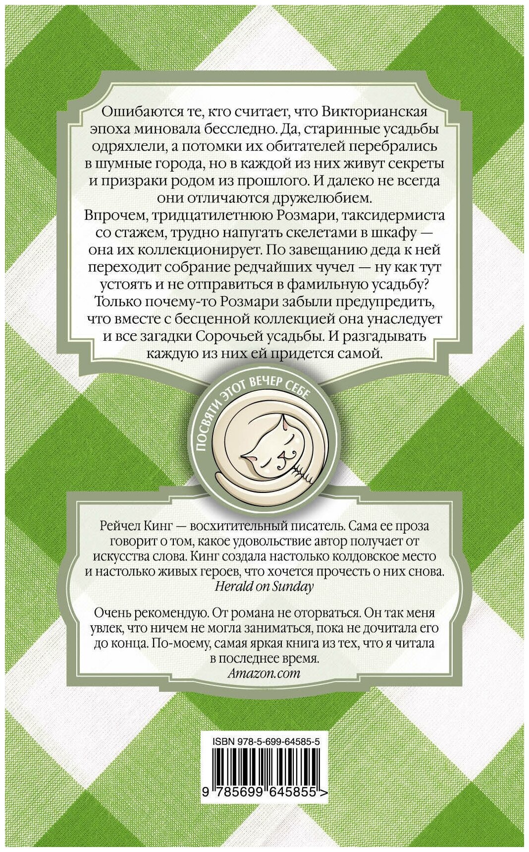 .Впрочем, тридцатилетнюю Розмари, таксидермиста со стажем, трудно напугать скелетами в шкафу - она их коллекционирует. По завещанию деда к ней переходит собрание редчайших чучел - ну как тут устоять и не отправиться в фамильную усадьбу? Только почему-то Розмари забыли предупредить, что вместе с бесценной коллекцией она унаследует и все загадки Сорочьей усадьбы. И разгадывать каждую из них ей придется самой.