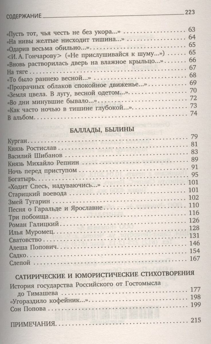 Алексей Константинович Толстой (1817-1875) в истории русской литературы известен как один из создателей легендарного образа Козьмы Пруткова, от имени которого он со своими братьями Алексеем и Владимиром Жемчужниковы-ми подарил читателям множество бессмертных афоризмов и мудрых изречений. А. К. Толстой был еще и замечательным прозаиком (роман «Князь Серебряный»), драматургом, тонким и одухотворенным лириком, автором сатирических сти-4 хов, а также баллад и былин, написанных на интереснейшем историческом материале. Его творчеством увлекались Валерий Брюсов, Александр Блок, Велимир Хлебников, а Владимир Маяковский, по свидетельству Корнея Чуковского, знал поэзию Толстого «наизусть от доски до доски» и любил читать вслух. Многие стихотворения А. К. Толстого положены на музыку и стали известными романсами, среди которых «Колокольчики мои, цветики степные», «То было раннею весной», «Средь шумного бала случайно...» и другие. В настоящее издание вошло лучшее из поэтического наследия этого самобытного мастера столь разностороннего дарования.