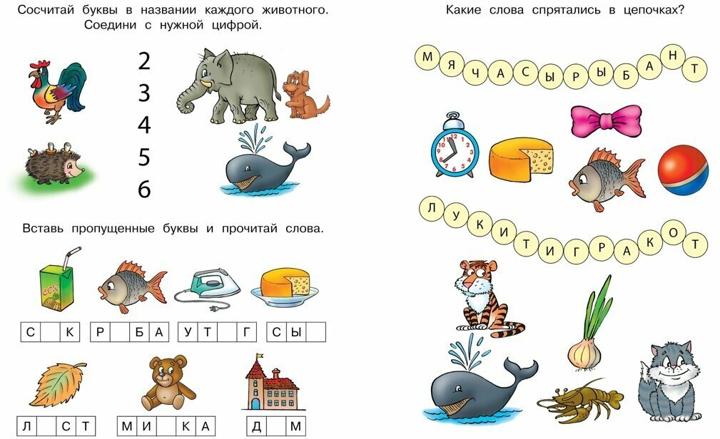 Добрый день! Задания будут интересны и детям так как их интересно выполнять , и взрослым так как они представляют собой необходимую базу для школы! Ребенок научится находить слова на одну букву, находить слоги с которых начинаются слова , считать буквы в названиях животных и вставлять пропущенные буквы!