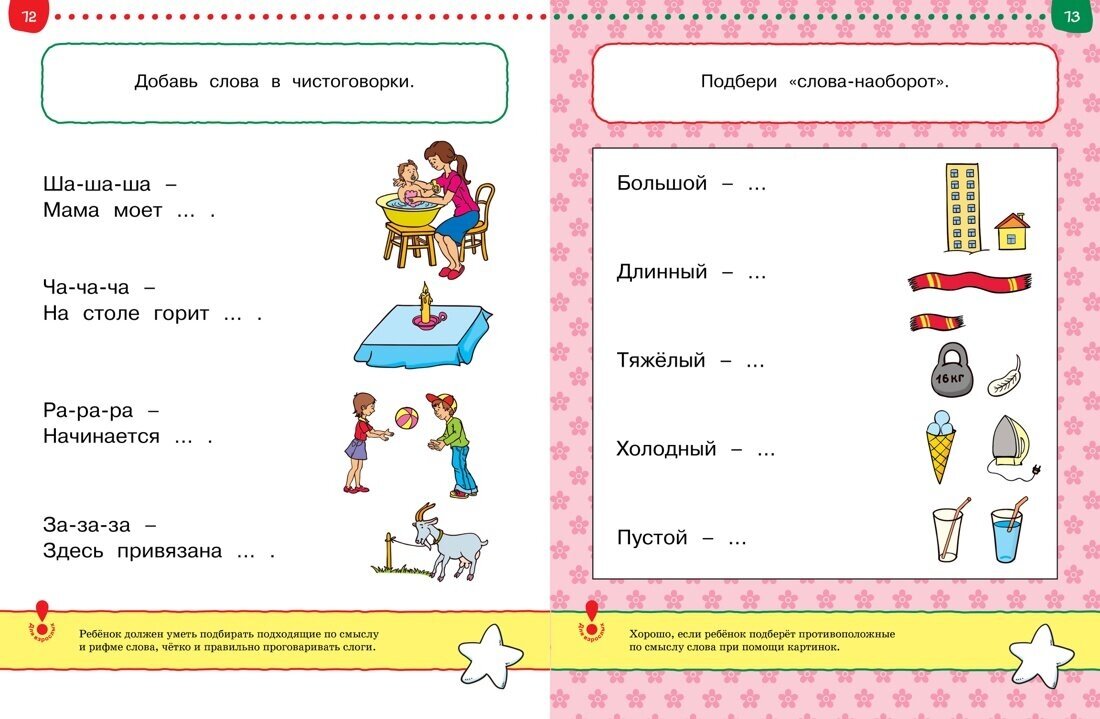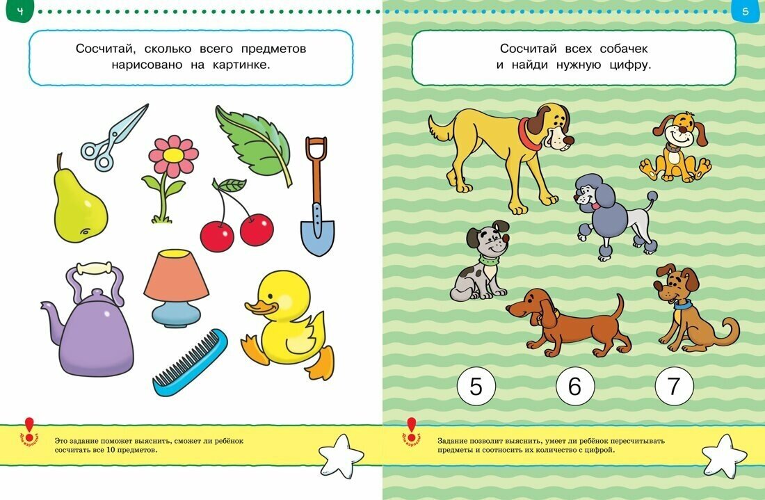 Легкие задания вселяют в ребенка уверенность и желание «еще позаниматься», а сложные – подталкивают к тому, чтобы вместе с родителями узнать что-то из других книг или чему-то еще научиться (например, читать или писать цифры), а потом вернуться снова к заданию.