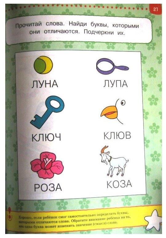Этот раздел вызвал определенное недоумение, особенно на фоне элементарных заданий в разделе "Математика". Как-то мне не встречались дети, которые в 4 года считают только до 10, на зато вот читать умеют ого-го!