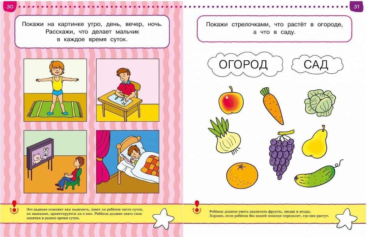 Позанимавшись по всем книжкам серии, могу сказать что, во-первых, они очень нравятся ребенку, во-вторых, помогают родителям (везде есть подсказки), ну, и в-третьих, развивают ребенка и рождают у него радость от «учебы», несмотря на то, что в каждой книге Тестов встречаются как очень легкие, так и сложные (на мой взгляд) для этого возраста задания. Легкие вселяют в ребенка уверенность и желание «еще позаниматься», а сложные – подталкивают к тому, чтобы вместе с родителями узнать что-то из других книг, а потом вернуться снова к заданию. Если ребенок еще не читает или не пишет цифры, можно задания сделать с ним устно.