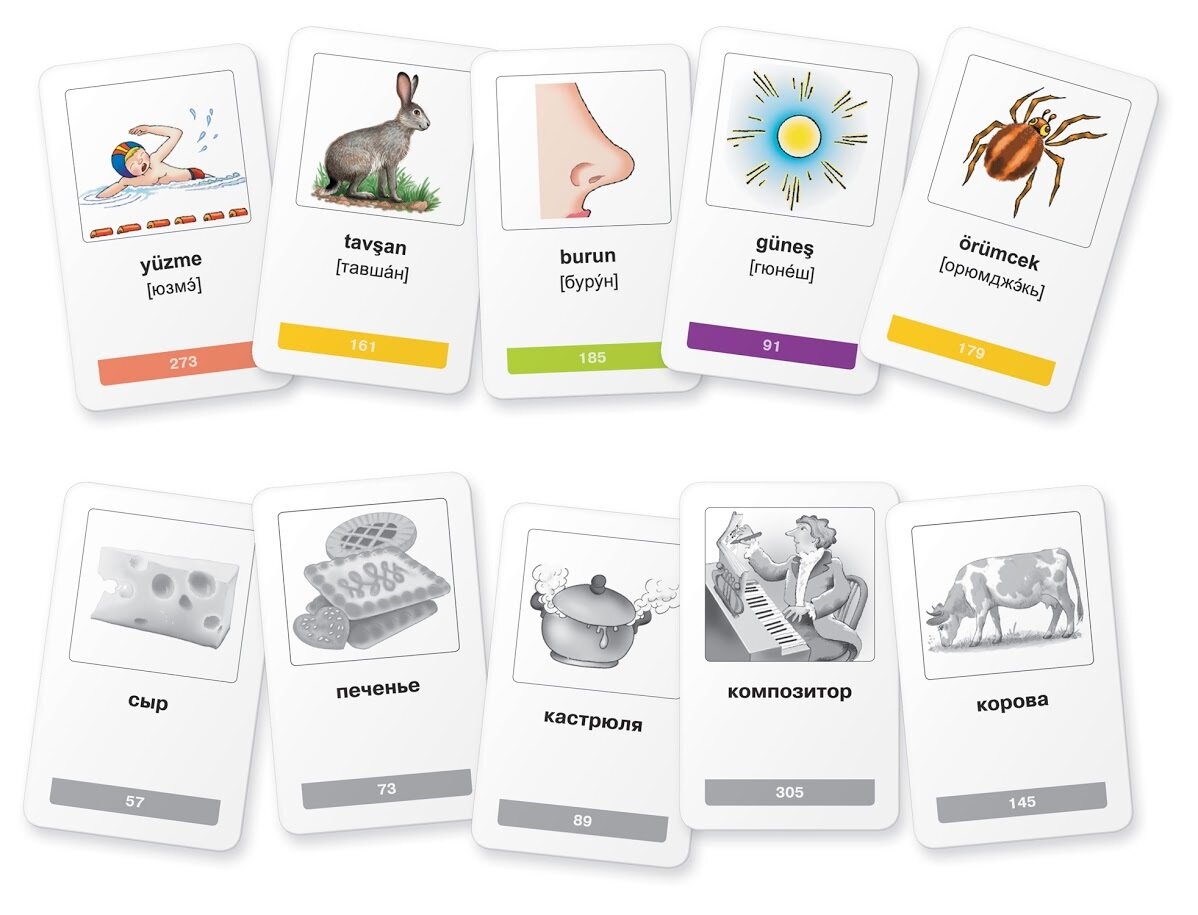 Комплект карточек предназначен для начинающих изучать турецкий язык. На карточках размещены наиболее употребимые турецкие слова, относящиеся к базовой лексике. Все слова разделены на тематические блоки, сопровождаются занимательными иллюстрациями и транскрипцией. Предлагаемая методика запоминания основана на связи турецкого и русского слова через картинку. Это позволяет выучить быстро и эффективно большое количество новых слов. В пособии предусмотрена возможность самостоятельного создания дополнительных карточек с использованием имеющихся в комплекте заготовок.