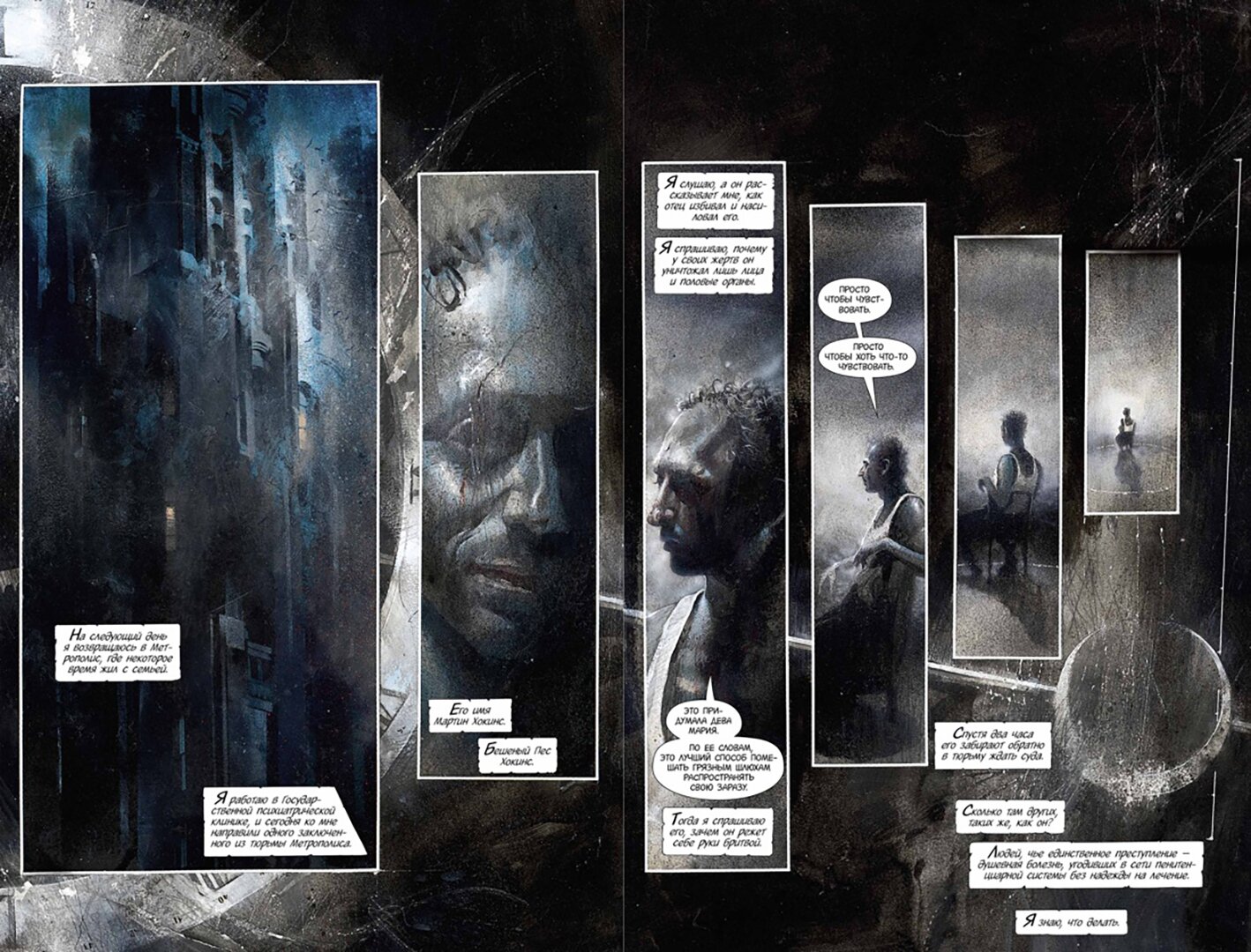 Наиотличнейшее издание. 120 страниц необычного комикса (нетипичный рисунок, стиль), комментарии от авторов и редактора, а также сценарий самого комикса. Можно читать сам комикс параллельно со сценарием и подмечать для себя упущенные детали.