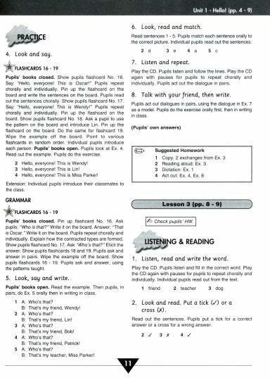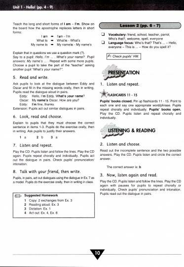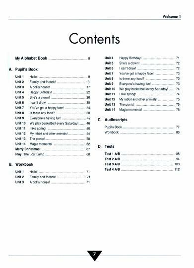 Welcome 1" is a two level beginner's course for children learning English. Pupils will be entertained by the book's lively characters, as their magical Genie transports them to new and exciting places. The Teacher's Book gives step-by-step lesson plans and the answers to the exercises for both the Pupil's Book and the Workbook. It also contains extra ideas on how to present new words and grammar structures, as well as four photocopiable assessment tests in two versions and tapescripts of the listening activities.