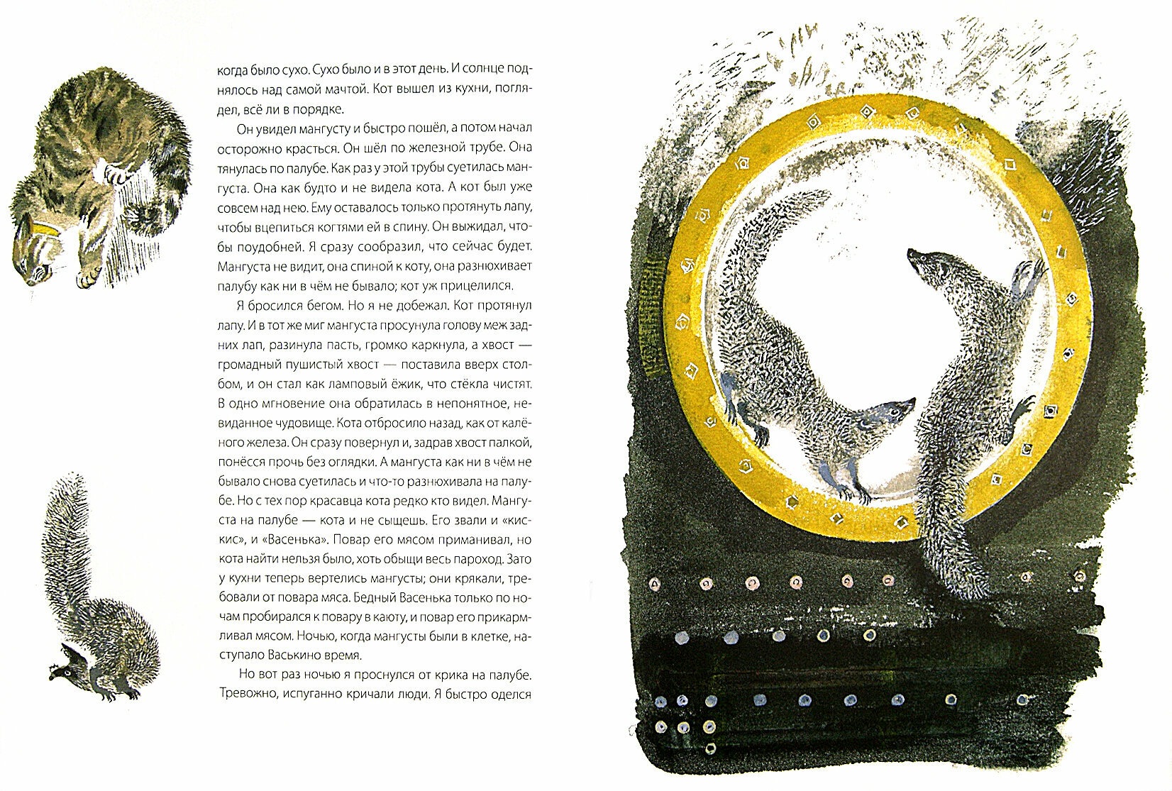 Борис Степанович Житков (1882-1938) - человек удивительной судьбы. Музыкант и фотограф, кораблестроитель и полиглот, он дважды совершил кругосветные путешествия. О его многочисленных профессиях и занятиях можно рассказывать очень долго, но нам, прежде всего, он известен по замечательным рассказам для детей. Из захватывающей истории «Мангуста» вы узнаете о весёлых и опасных приключениях двух смышлёных зверьков, которых простодушный моряк принес на корабль.