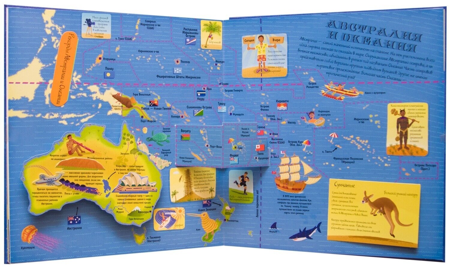 Вас ждут замечательные объемные карты материков, интересные факты о самых разных уголках нашей планеты, знаменитые достопримечательности и множество сюрпризов!
