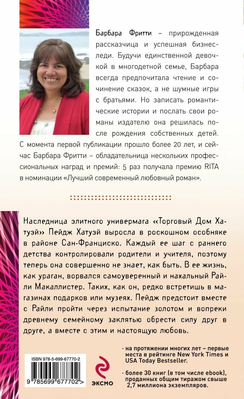 Наследница элитного универмага «Торговый Дом Хатуэй» Пейдж Хатуэй выросла в роскошном особняке в районе Сан-Франциско. Каждый ее шаг с раннего детства контролировали родители и учителя, поэтому теперь она совершенно не знает, как быть. В ее жизнь, как ураган, ворвался самоуверенный и нахальный Райли Макаллистер. Таких, как он, редко встретишь в магазинах подарков или музеях. Пейдж предстоит вместе с Райли пройти через испытание золотом и вопреки древнему семейному заклятью обрести силу друг в друге, а вместе с этим и настоящую любовь.