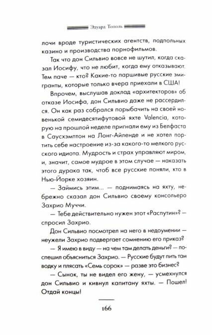 Тополь, как всегда, не отпускает от текста до конца книги.Интересно было следить за судьбой людей. Восхищает целеустремленность и "богоизбранность "народа. Становится понятно, почему характер «советских евреев» после тяжелых испытаний закалился до твердости стали. Ну а чего не отнять у народа , так это коммерческой жилки, но два раза сделать отступление о необходимости оплаты авторского труда для такой . в общем-то не большой книги, по-моему перебор.