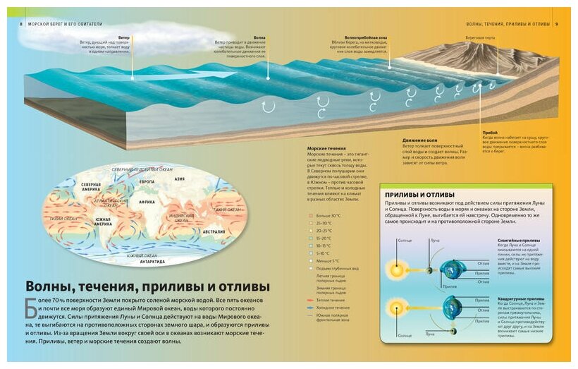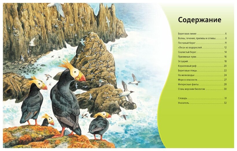 У нас много энциклопедий на тему океанов, моря и обитателей: любит ребенок все это изучать. Но эта книга отличается от всех подачей информации, она как-бы чуть в другой стороны преподносит - об обитателях морского берега. Отличная, доступная информация, отличные фото, полиграфия. Нет, нет да прочитаем, хотя уже все "зачитано" а уж картинки дети (5лет и 2 года) рассматривают регулярно. Купила все книги этой серии, всем рекомендую.