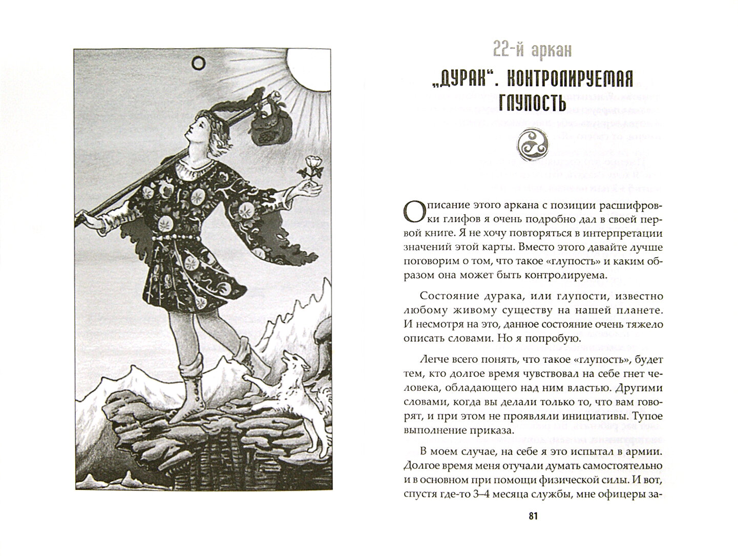 Эта книга - одна сплошная практика. Никакой болтологии. От одного лишь прочтения книги вы ничего не получите, действительно, чтобы что-то увидеть, изменить - нужно практиковать. Медитации на каждый аркан описаны подробно, так что понять их не трудно. Если вы начнете их практиковать, готовьтесь к реальным изменениям: вы можете и потерять, и обрести. Готовым надо быть ко всему.