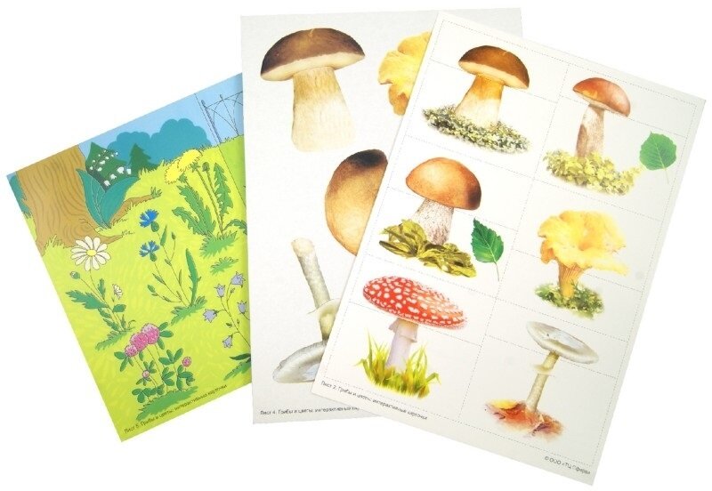 Грибы и цветы. Демонстрационные интерактивные карточки по познавательно-речевому развитию. Учебно-игровой комплект (2 рисунка А4 + 47 карточек) (Елена Михайловна Косинова); Сфера образования, 2018