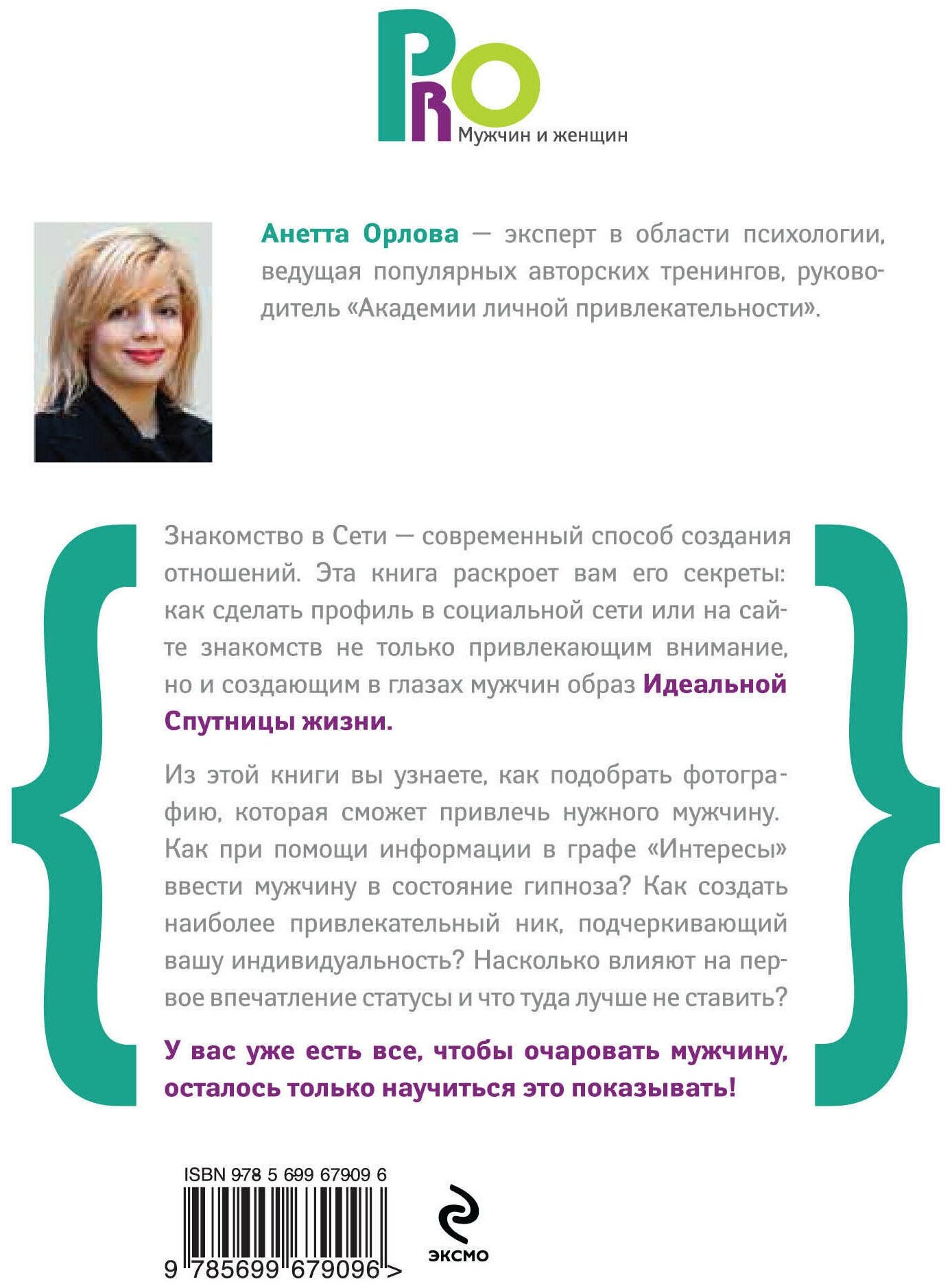 У каждой современной девушки есть страничка в социальной сети — и не в одЦой! Задумывались ли вы о том, чтобы сделать свой профиль в Интернете наживкой для мужчин? Знакомство в сети — современный способ создания отношений. Эта книга раскроет вам секреты, как сделать профиль в социальной сети или на сайте знакомств не только привлекающим внимание, но и создающим в глазах мужчин образ Идеальной Спутницы жизни.