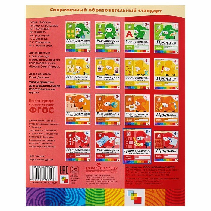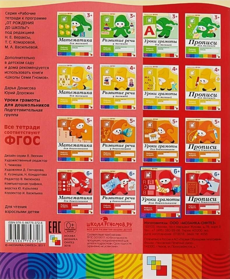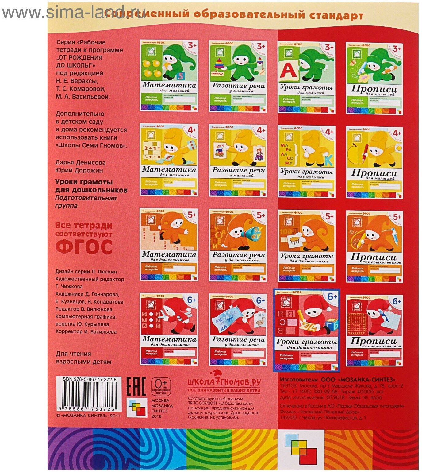 Уроки грамоты для дошкольников Подг. группа Р/т (Денисова Дарья; Дорожин Юрий); МОЗАИКА kids, 2017