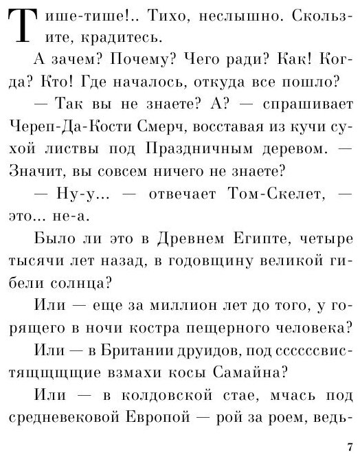 Незатейливо и в легкой манере, присущей только Брэдбери, описывается альтернативная история празднования "дня тыкв", раскрывается история традиций, костюмов, пр.