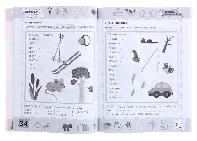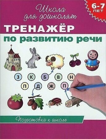 Тренажер по развитию речи из серии Школа для дошколят для подготовки ребенка к поступлению в школу. Учебное пособие разработано с ученом усложнения задания и знакомство с новыми словами, звуками, подборка синонимов и антонимов. Пособие разбито на разделы - это развитие фонематического слуха, формирование грамматического строя речи, обогащение словарного запаса, развитие связной речи. В данном учебном пособии больше листов и соответственно больше различных заданий для ребенка. Учебное пособие в черно-белом формате, но это все равно не мешает ему быть интересным и занимательным. Так же присутствуют картинки. Интересное пособие, которое поможет при подготовке к школе.