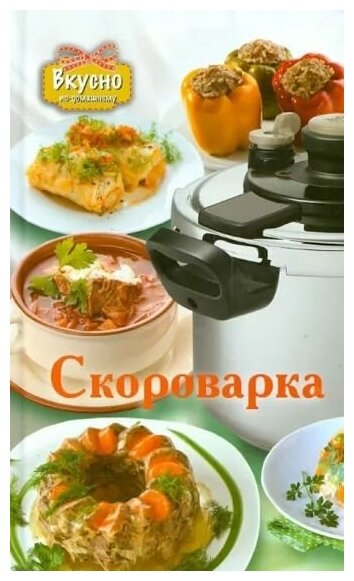 Неплохая кулинарная книжка про скороварку и "как с ней бороться". В книге очень много описания устройства скороварки и способов её применения в домашней кулинарии. Есть много полезных советов типа так делать нельзя, а так можно. Во второй части книги много интересных, хотя и простых базовых рецептов. Но с ними можно приготовить что угодно, добавляя или убавляя какие либо ингредиенты. Книга с хорошей полиграфией и множеством цветных красочных иллюстраций.