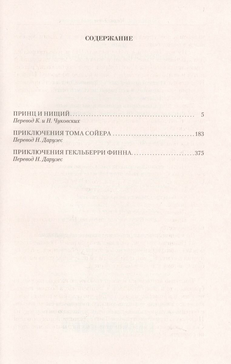 В издание вошли три знаменитых произведения Марка Твена: "Принц и нищий", "Приключения Тома Сойера" и "Приключения Гекльберри Финна". Издание не детское. Иллюстраций нет совсем. Бумага серая, неплотная. Шрифт средний, удобный для чтения.