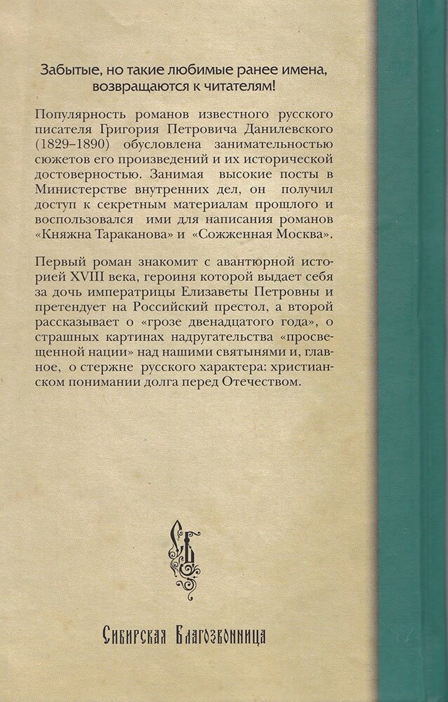 Княжна Тараканова. Сожженная Москва. Роман (Григорий Данилевский); Сибирская Благозвонница, 2010