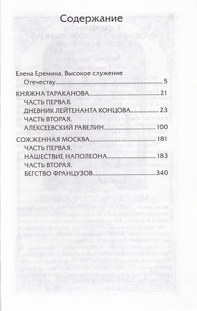 Популярность романов известного русского писателя Григория Петровича Данилевского (1829-1890) обусловлена занимательностью сюжетов его произведений и их исторической достоверностью. Занимая высокие посты в Министерстве внутренних дел, он получил доступ к секретным материалам своего времени и воспользовался ими для написания романов «КняжнаТараканова» и «Сожженная Москва». Первый роман знакомит с авантюрной историей XVIII века, героиня которой выдает себя за дочь императрицы Елизаветы Петровны и претендует на Российский престол, а второй рассказывает о «грозе двенадцатого года», о страшных картинах надругательства «просвещенной нации» над нашими святынями и, главное, о стержне русского характера: христианском понимании долга перед Отечеством.