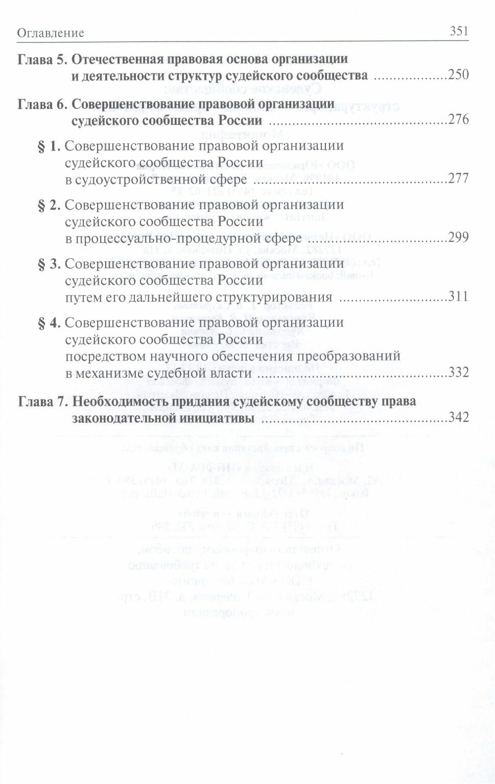 В монографии раскрываются актуальные теоретические и практические проблемы организации системы судейского сообщества России, ее структура, компетенция и полномочия ее звеньев и создаваемых органов. Освещены исторический отечественный аспект исследуемой области, международный и зарубежный опыт регулирования организации и деятельности органов и иных структур судейского сообщества. Предложены и обоснованы пути совершенствования и дальнейшего развития судейского сообщества и его органов в России в целях укрепления судебной власти и повышения независимости российских судей.