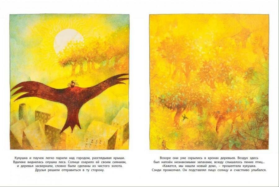 В заброшенном доме живет паучок по имени Сэнди. Он как умеет поддерживает жизнь в старинных часах с кукушкой, а чудаковатая деревянная птица продолжает исправно отсчитывать время. Они посмеиваются друг над другом, иногда даже беззлобно ссорятся. Но когда в дом приходит беда, становится понятно, какой крепкой дружбой связаны паучок и кукушка. Для детей дошкольного возраста. Для чтения взрослыми детям.