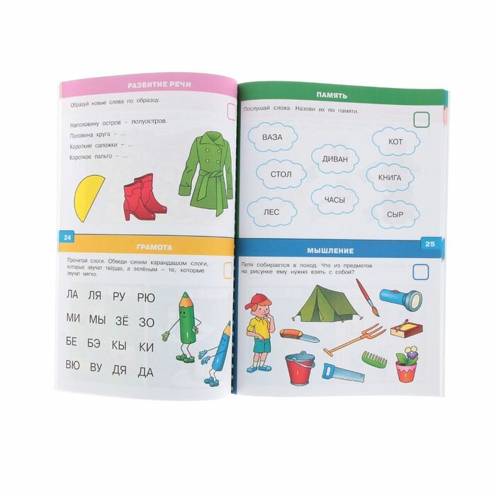 Задания в книгах "Тесты" составлены по разделам: мышление, грамота, развитие речи, математика, окружающий мир, моторика, сенсорика, внимание, память. Ребёнок ответит на вопросы по различным темам, научится размышлять и решать логические задачки, познакомится с основами чтения и счёта и подготовит руку к письму. В конце книги вы сможете подвести итог, подсчитав количество правильно и неправильно выполненных заданий.