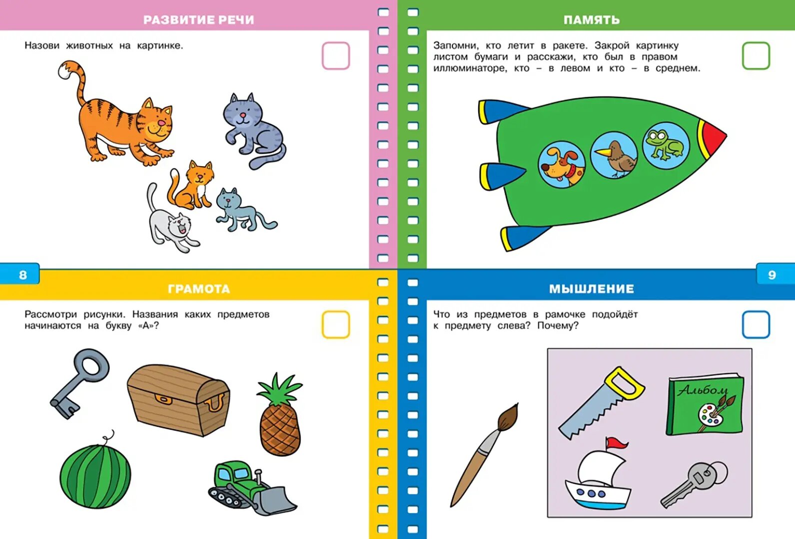 Задания в книгах "Тесты" составлены по разделам: мышление, грамота, развитие речи, математика, окружающий мир, моторика, сенсорика, внимание, память. Ребёнок ответит на вопросы по различным темам, научится размышлять и решать логические задачки, познакомится с основами чтения и счёта и подготовит руку к письму. В конце книги вы сможете подвести итог, подсчитав количество правильно и неправильно выполненных заданий.