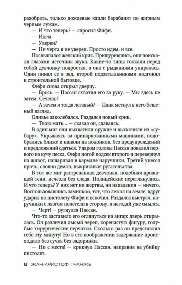 И Жан Кристоф Гранже дает тебе благодатную почву для работы- его книги просто кладезь фактов, тайн и немыслимых ужасов, копилка странностей героев и их темных сторон, полная жути и отвращения, противоположных чувств, смешивающихся с восторгом читателя от мастерства художника, создавшего эту картину.