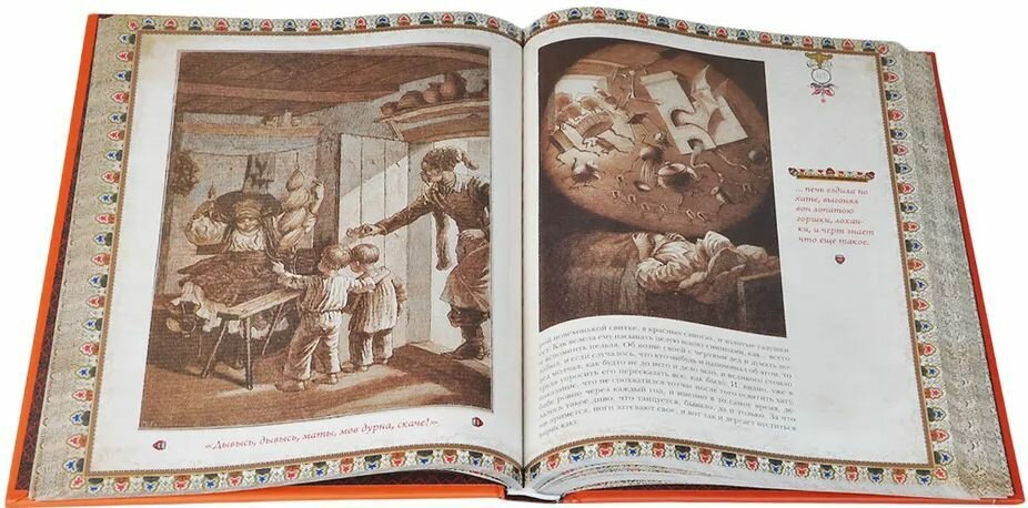 Разочарована. Если бы не спешила и вскрыла типографскую упаковку при получении, то скорее всего, отказалась бы. Книга вроде и неплохая, но не то, что я ожидала. Польстилась на воспроизведение исторических иллюстраций, но они столь неодинакового качества, некоторые с весьма слабым разрешением. А ведь в оригинале это, скорее всего, были очень четкие гравированные рисунки. Рамочки по периметру страницы - красиво, но как-то избыточно и не так уж нужно для Гоголя. Короб толстенного картона, полностью повторяющий обложку, не уверена, что он необходим. Текст в центре страницы, большие белые поля. На отдельных страницах они заполнены дополнительными рисунками и цитатами, на других - пустые. Чудится мне гоголевская усмешка по поводу этого издания. Но это первые впечатления, потом напишу, изменились ли они.