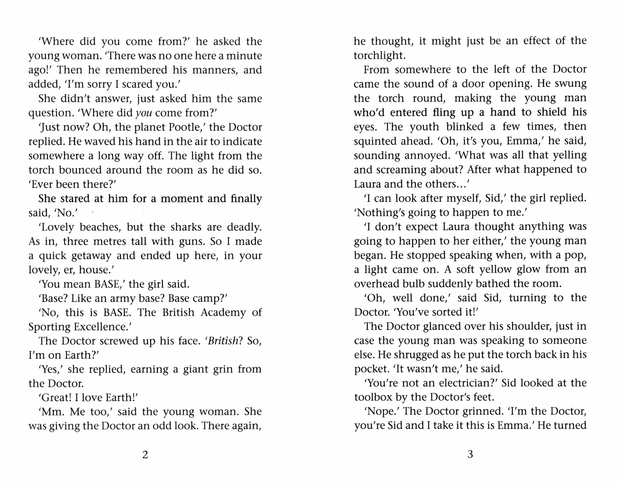 Every time the lights go out, someone dies...The TARDIS lands at an academy for top athletes, all hoping to be chosen for the forthcoming Globe Games. But is one of them driven enough to resort to murder? The Doctor discovers that the students have been hushing up unexplained deaths. Teaming up with a young swimmer called Emma, the Doctor begins to investigate - but he doesn't expect to find a squad of Sontarans invading the academy!