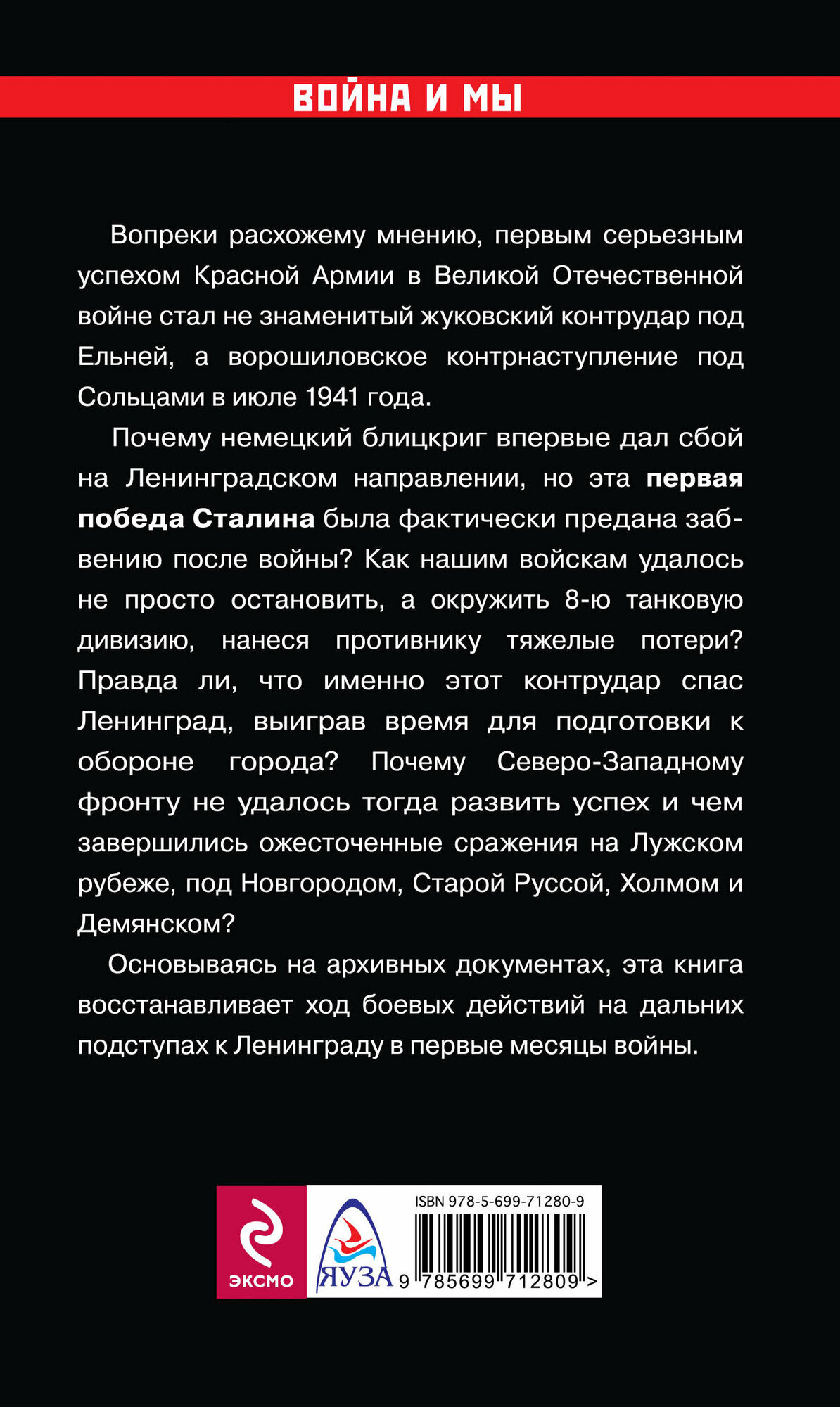 Книга для тех кто любит думать.Данная книга дает ясную картину событий, происходящих в полосе наступления группы армий «Север» в июне-августе 1941 года. Не затрагивая приграничные сражения Северо-Западного фронта, автор подробно описывает боевые действия советских войск на территории нынешних Ленинградской и Новгородской областей. Контрудару под Сольцами посвящены 15-20% книги, остальные главы посвящены обороне Лужского рубежа, контрудару под Старой Руссой, боевым действиям около городов Холм и Демянск. Все эти события тесно связаны друг с другом и позволяют сформировать целостную картину происходящего. Для написания книги использовано 48 вторичных источников и множество архивных документов.
