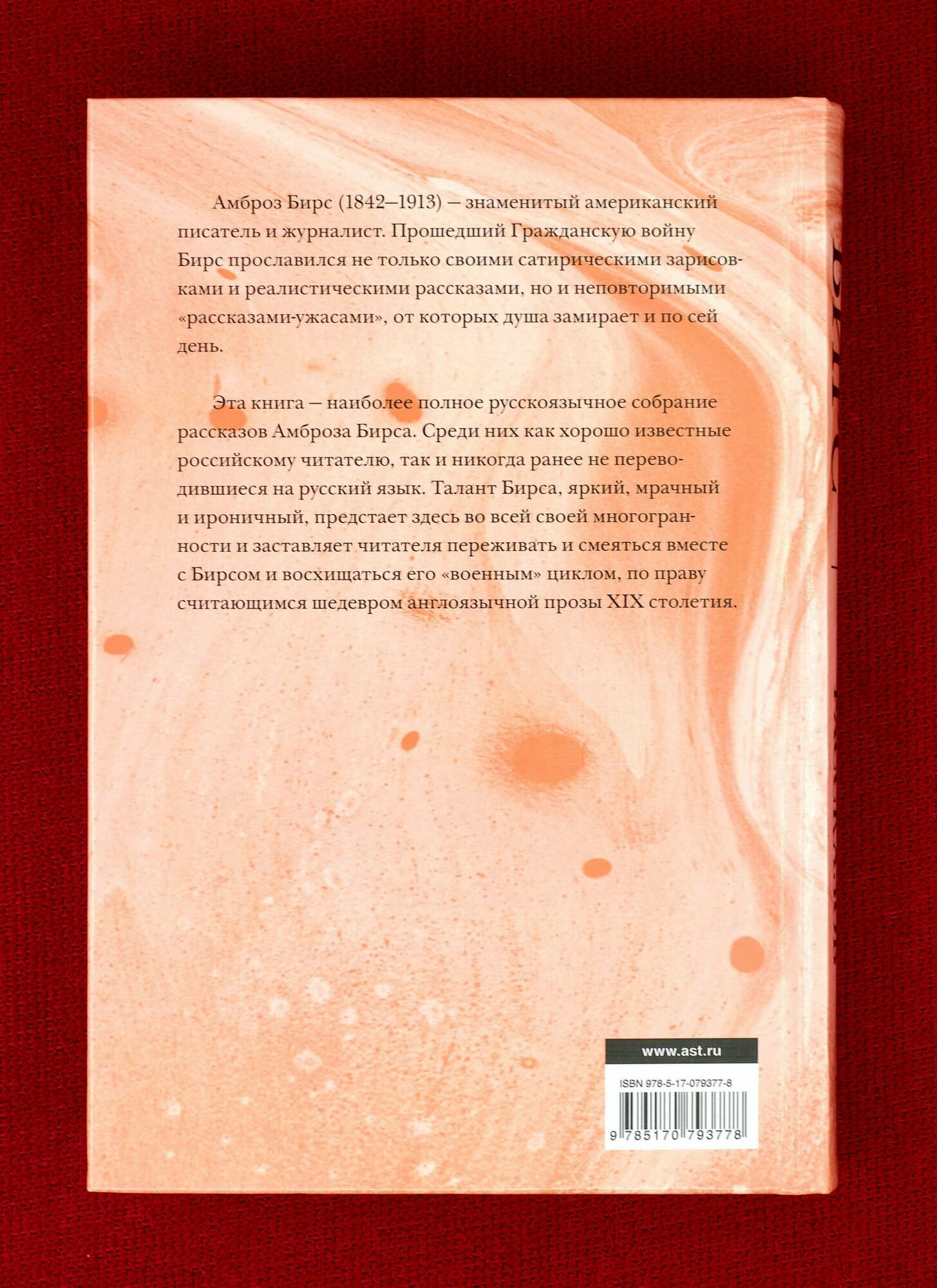 Эта книга - наиболее полное русскоязычное собрание рассказов Амброза Бирса. Среди них как хорошо известные российскому читателю, так и никогда ранее не переводившиеся на русский язык. Талант Бирса, яркий, мрачный и ироничный, предстает здесь во всей своей многогранности и заставляет читателя переживать и смеяться вместе с Бирсом и восхищаться его «военным» циклом, по праву считающимся шедевром англоязычной прозы XIX столетия.