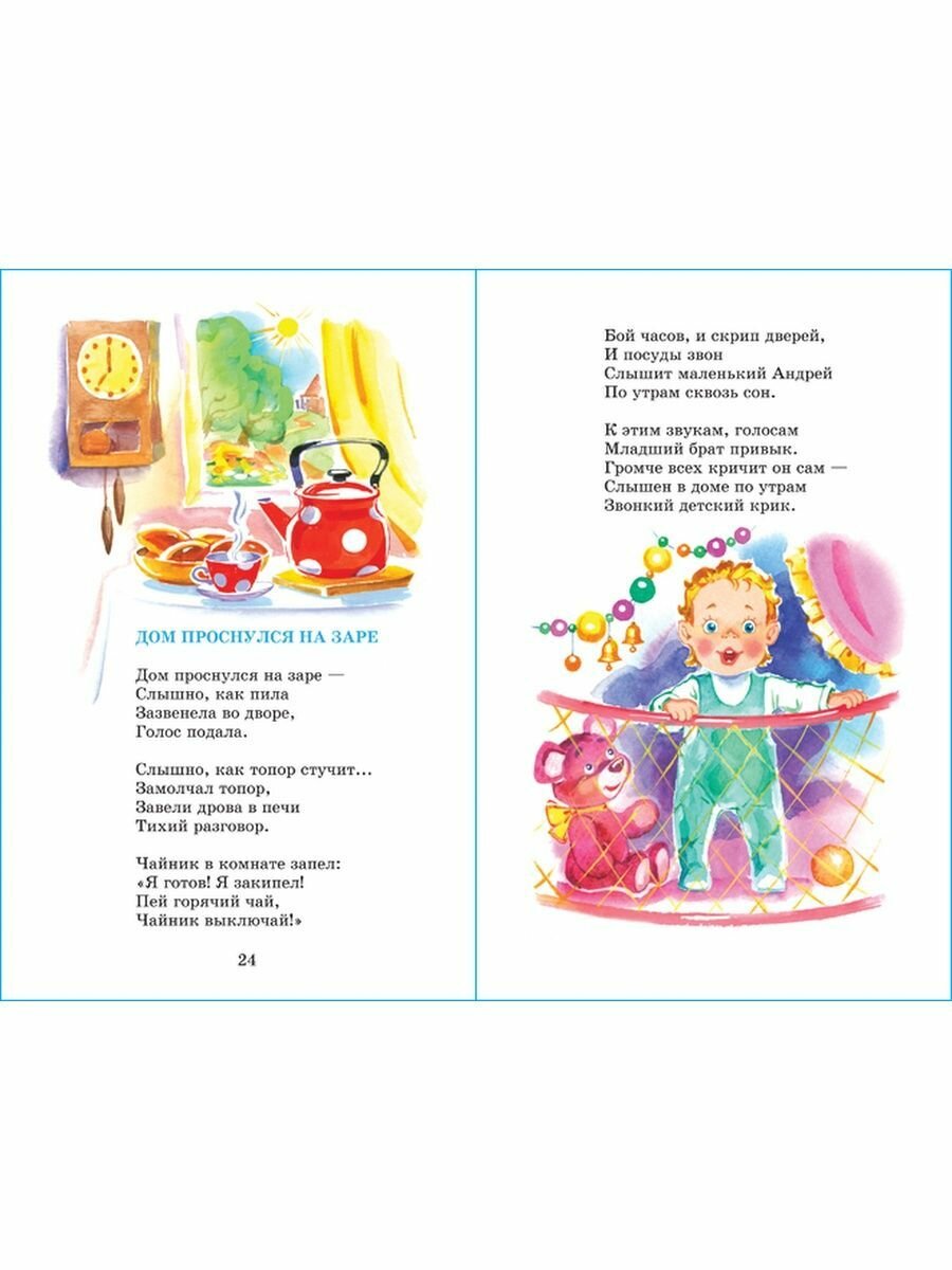 На 4 месяца подарили сыну эту книжку! Ему очень понравилось, как мы читаем стихи и рассматриваем картинки. Конечно, как мама, вскоре я уже выучила многое наизусть и в любой "капризный" момент начинала малышу рассказывать эти стихи и у него менялось настроение к лучшему. Сейчас сыну годик и стихи вышли "на новый уровень" с танцами, мимикой и жестами, но все ещё актуальны и любимы.