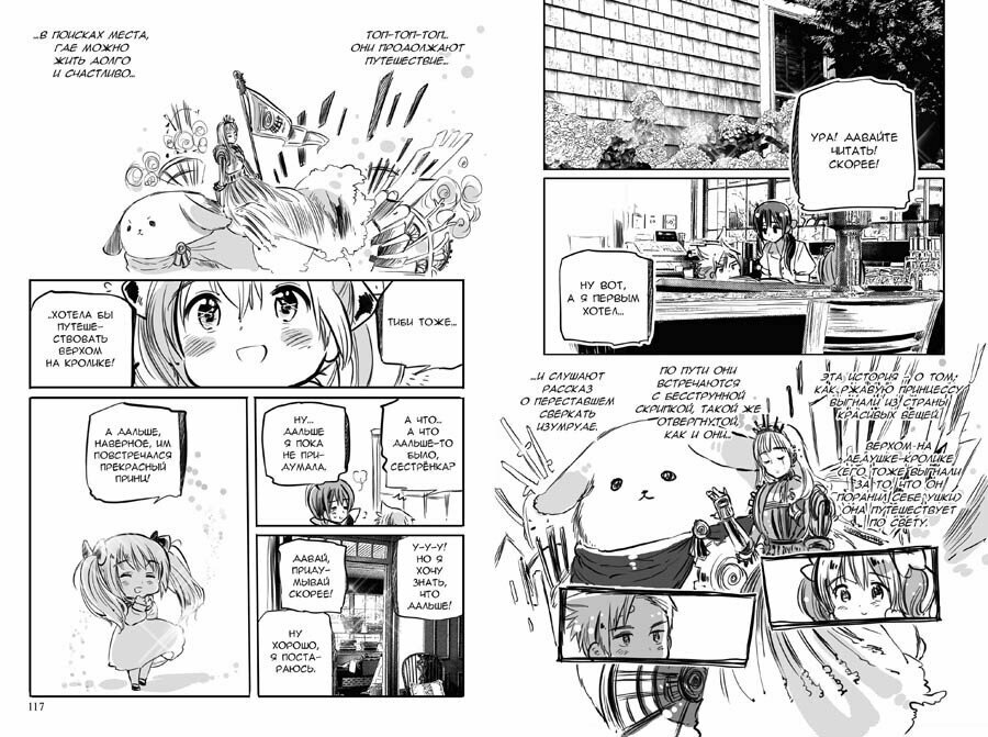 После прочтения третьего тома, я наконец-то поняла, чего мне не хватает в этой манге - глубины. Она максимально поверхностная, описание персонажей даются только на словах, почти никаких подкреплений в эпизодах манги нет. О главном персонаже вообще очень мало известно, с одной стороны автор о нем рассказывает, а с другой стороны совершенно не раскрывает его переживаний. Все персонажи выглядят очень по-детски, особенно Тиби, конечно. Она на фоне других персонажей вообще не понятно на кого похожа, для ребенка слишком грамотная речь (если это конечно не косяк переводчиков), а ростом до колена взрослым персонажам - бред какой-то.