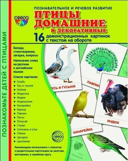 Птицы домашние и декоративные. 16 демонстрационных картинок (Цветкова Татьяна Владиславовна); Карапуз, 2016