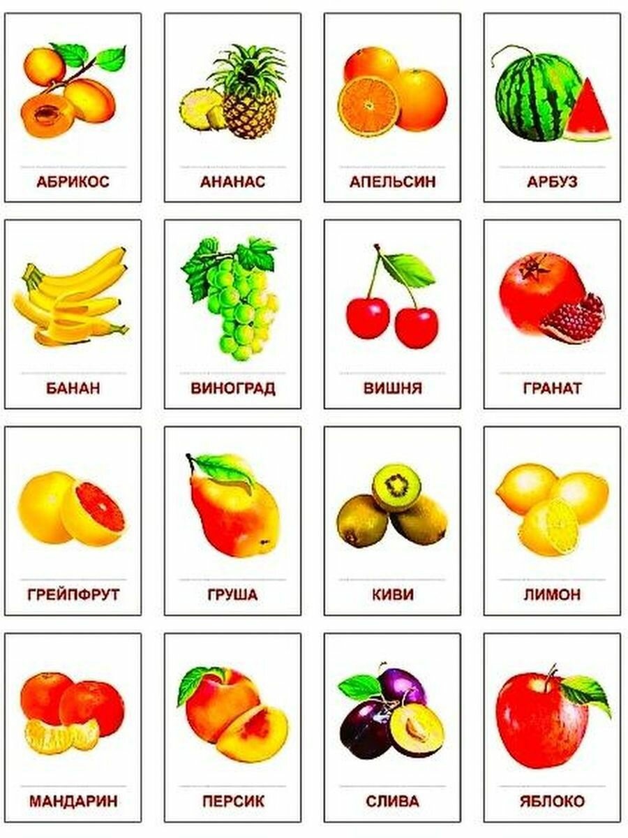 Эти карточки в рекламе не нуждаются. Они просто супер за такую цену. Реалистичность картинок это их самое главное достоинство, на мой взгляд. Висят на стене, учим фрукты. Купила почти всю серию и раз в неделю меняю экспозицию на стене. Ребенок с удовольствием тычет пальчиком в названный мамой фрукт.