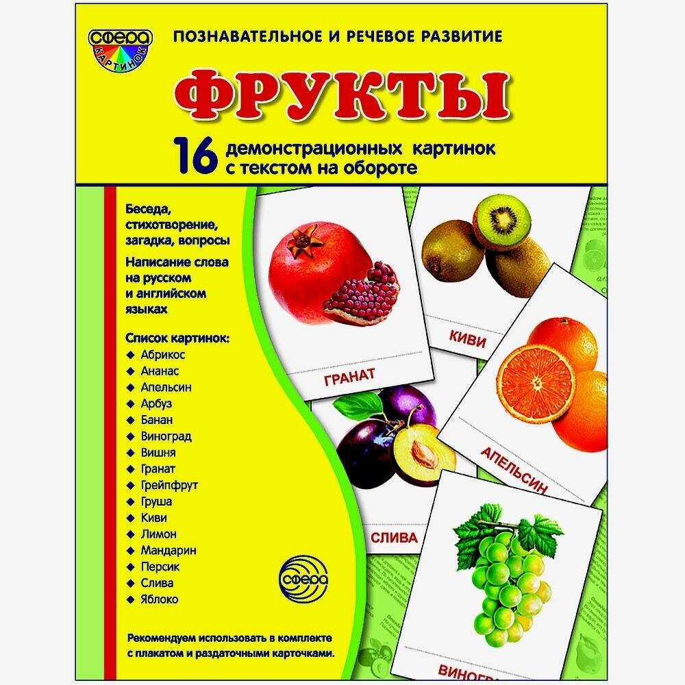 Фрукты. 16 демонстрационных картинок (Цветкова Татьяна Владиславовна); Сфера, 2013