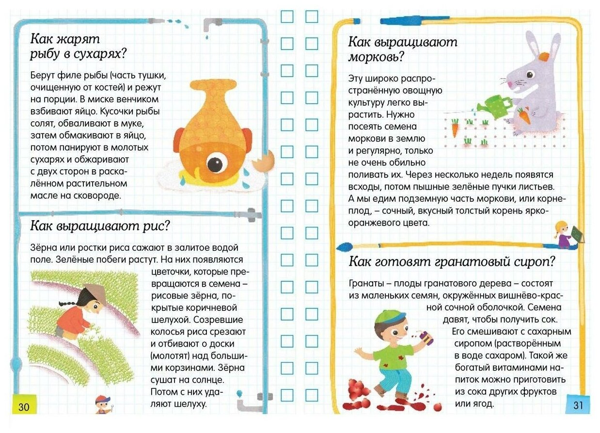 4 темы этой универсальной энциклопедии ответят на все вопросы почемучек в таких областях как: наше тело, жизнь вокруг нас, история, природа. Подача материала построена по принципу ответов на самые интересные вопросы. В книге также присутствуют наклейки и много занимательных игр.