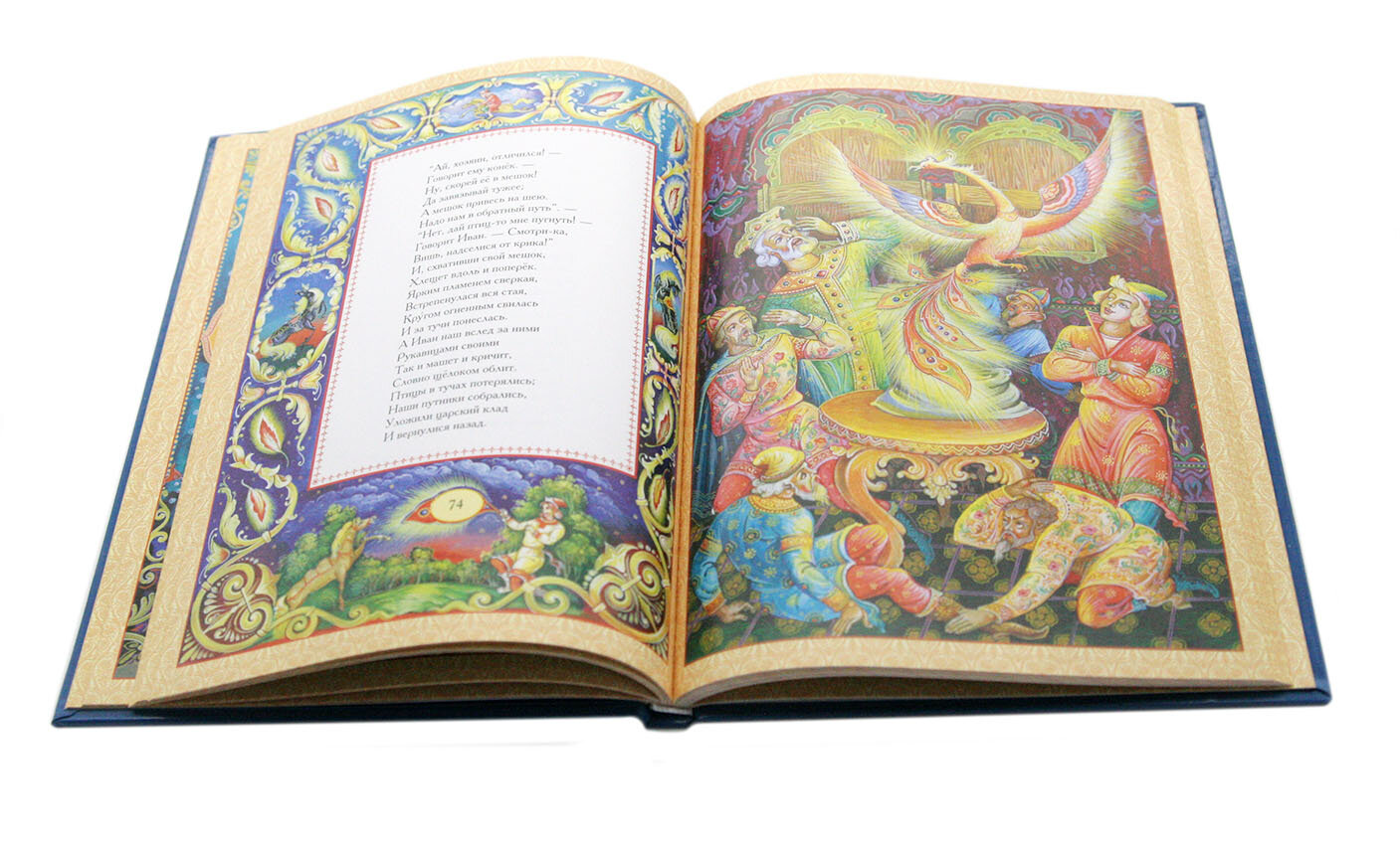 Выбрала "Медный всадник". Очень колоритные иллюстрации в стиле "Живопись Мстеры", такие национальные, традиционные, русские. Вся страница полностью цветная, даже нумерация страниц очень красиво оформлена. Бумага мелованная, переплет твердый. Приятно для глаз и для настроения. Приятно держать в руках такую красивую книгу. Отлично подойдет для подарка иностранным гостям или друзьям, ведь имеются издания на других языках.
