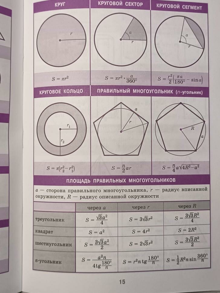 Справочник по геометрии для школьника. Имеются все основные необходимые формулы, ра обложке, есть место, куда можно вписать дополнительные формулы при необходимости. Очень тоненький, доступным языком все написано. Можно взять с собой в школу. Очень обрадовала меня цена. При покупке немного сомневалась, но я нисколько не разочарована в данном справочнике.Все самостоятельные контрольные д.б. только на 5!