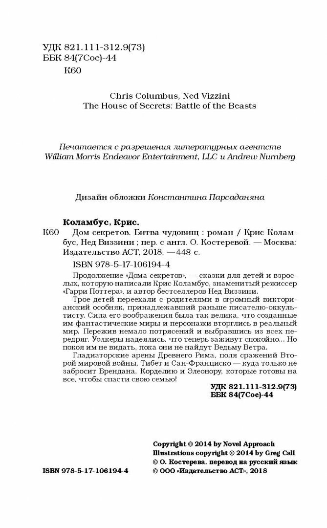 Продолжение «Дома секретов», — сказки для детей и взрослых, которую написали Крис Коламбус, знаменитый режиссер «Гарри Поттера», и автор бестселлеров Нед Виззини.
