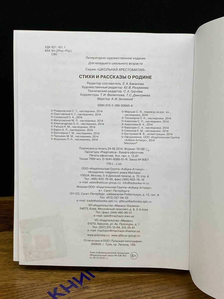 На сегодняшний день товар «Книга: Стихи и рассказы о Родине (Паустовский Константин Георгиевич, Барто Агния Львовна, Лермонтов Михаил Юрьевич, Ушинский Константин Дмитриевич); Азбука, 2014» можно купить с кешбеком в 1 магазине: book24