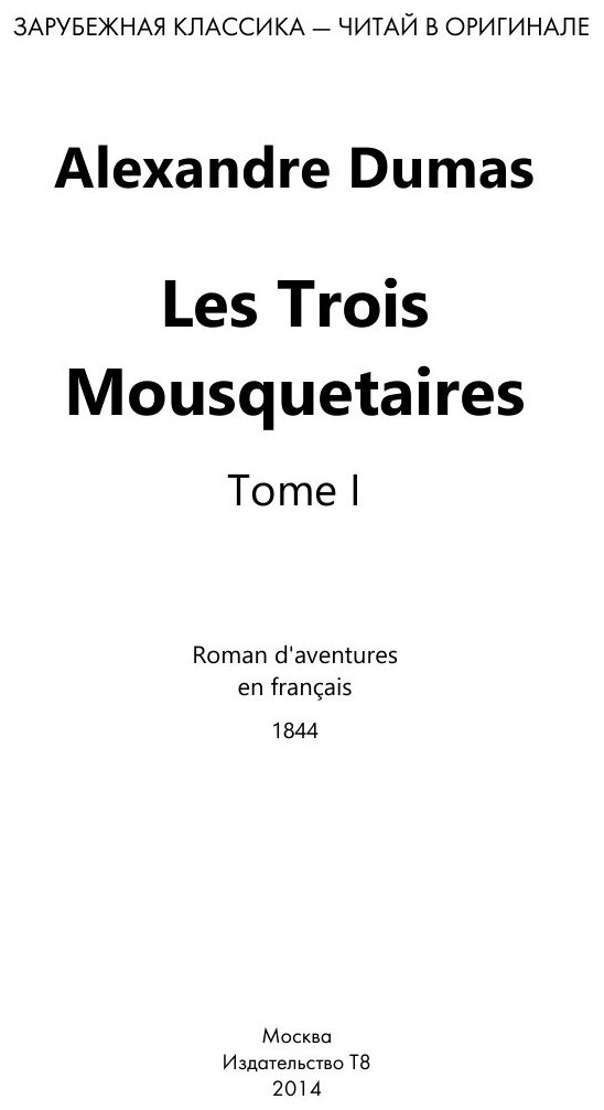 Les Trois Mousquetaires. Tome I. Roman d`aventures en francais. 1844 = Три мушкетера. Том I. Приключенческий роман на французском языке (Ann Dumas); Книга по Требованию, 2014
