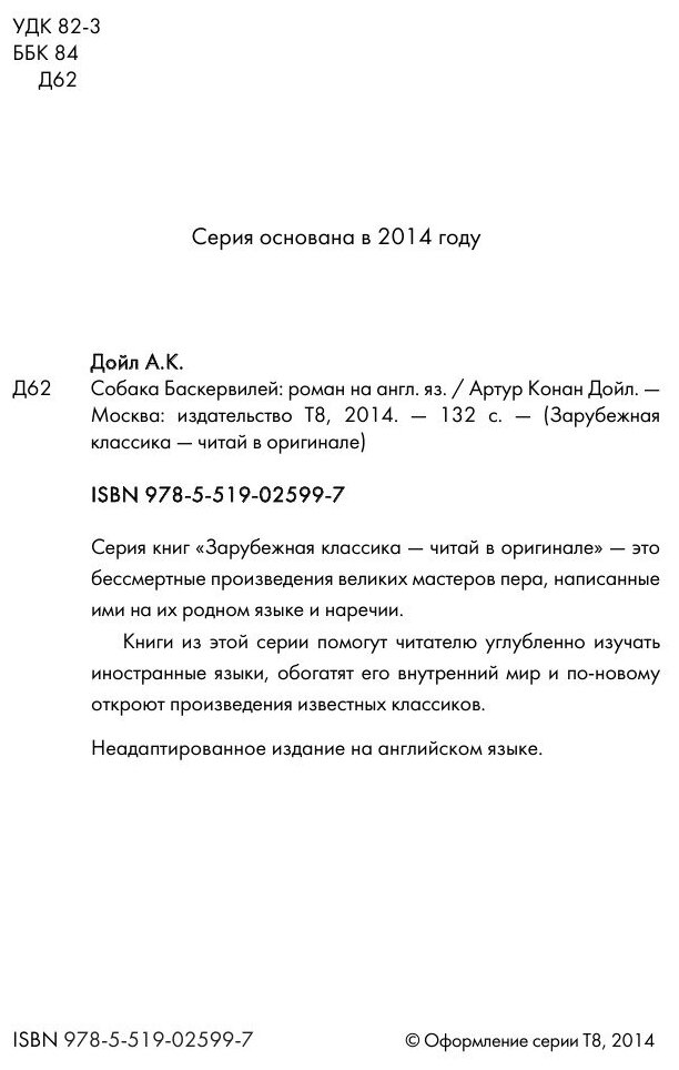 The Hound of the Baskervilles. Detective novel in English. 1902 = Собака Баскервиллей. Детективный роман на английском языке (Doyle Arthur Conan); Книга по Требованию, 2014