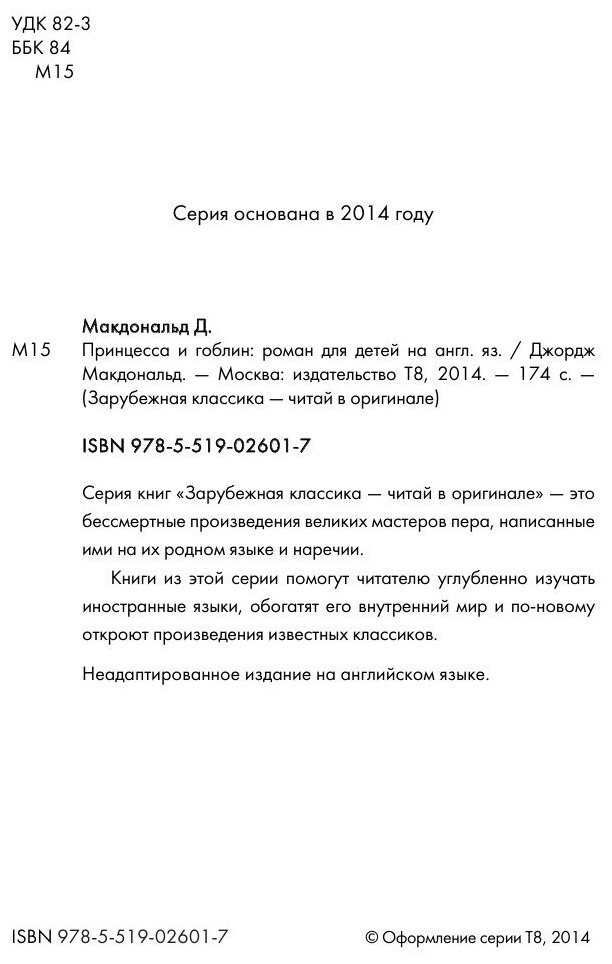 The Princess and The Goblin. A Novel for Children in English. 1871 = Принцесса и гоблин (Макдональд Джордж); Книга по Требованию, 2014