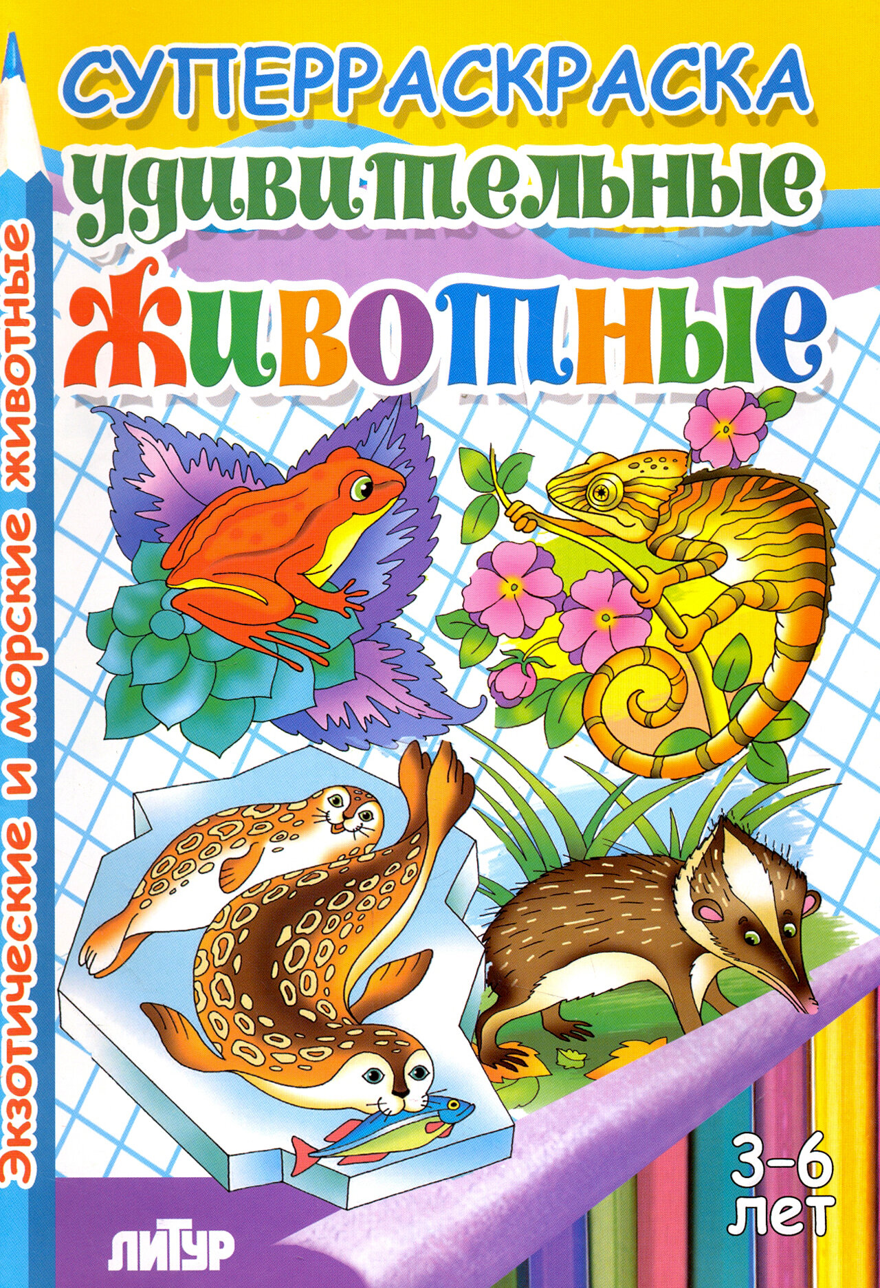 Удивительные животные. Раскраска. Читаем по слогам. Животные Австралии. Морские животные. Самые-самые. Экзотические животные (Богуславская М. (худ.)); Литур, 2014