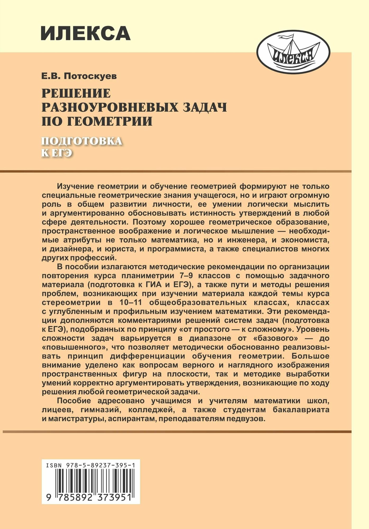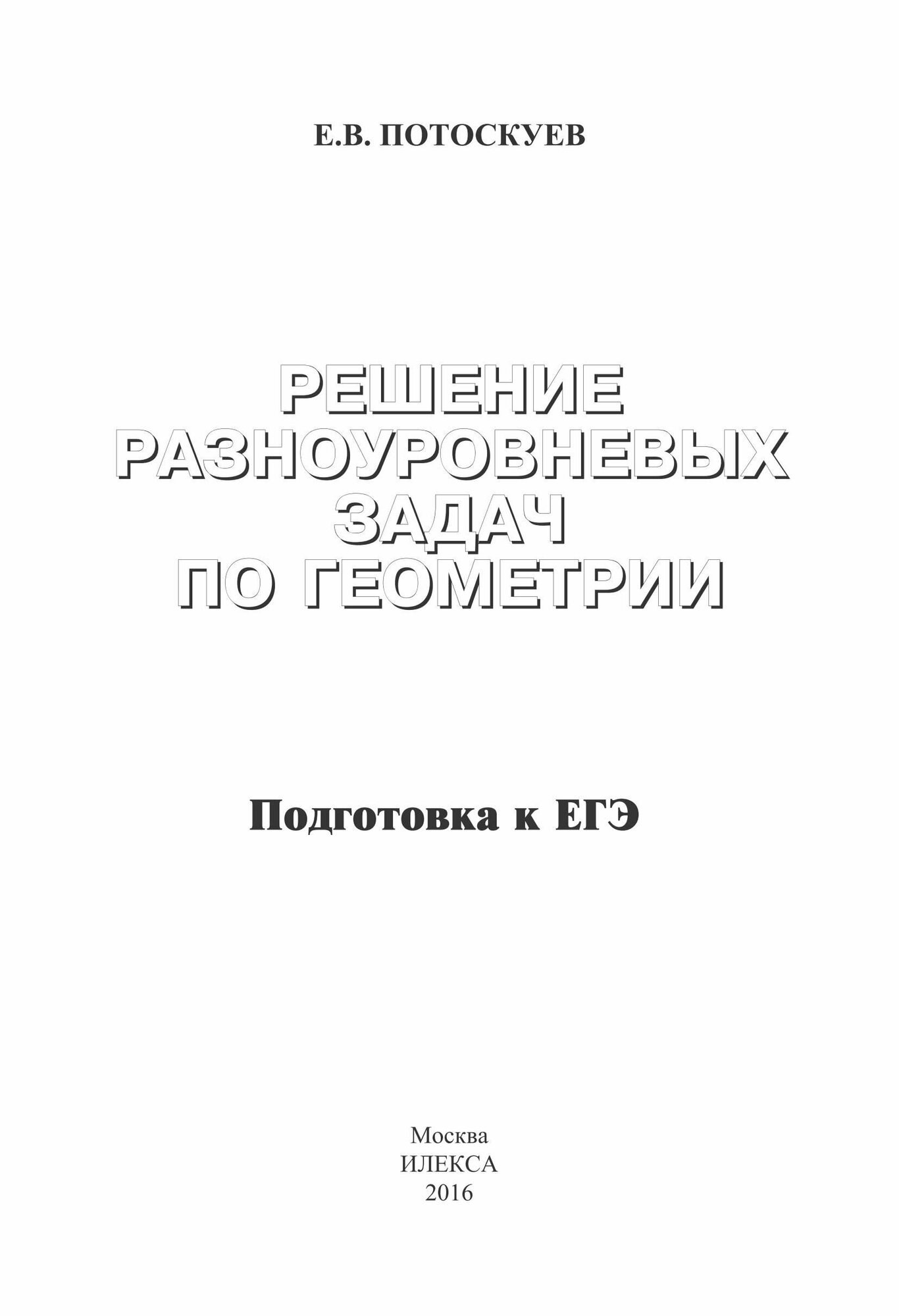 Решение разноуровневых задач по геометрии. Подготовка к ЕГЭ (Евгений Викторович Потоскуев); Илекса, 2014